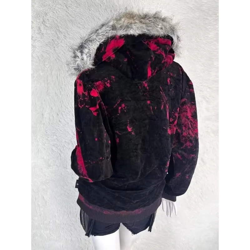 2025 nueva moda americana de gran tamaño con estampado de cuello de piel Sudadera con capucha para mujer Y2K Rock Dark Popular Casual Joker pareja sudadera Tops