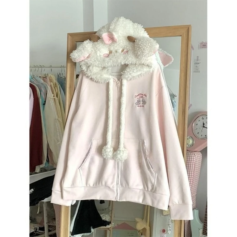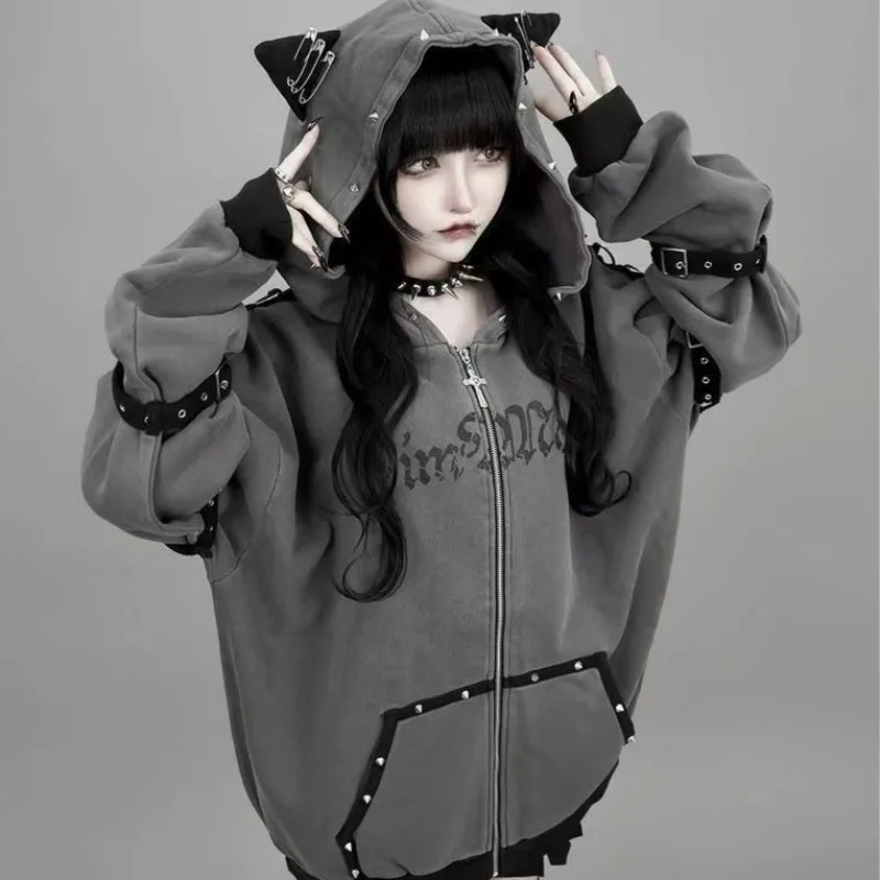 Sudadera Kawaii japonesa de manga larga para mujer, sudaderas informales con subcultura, abrigo con estampado de remaches, ropa elegante de estilo dulce y bonito para mujer